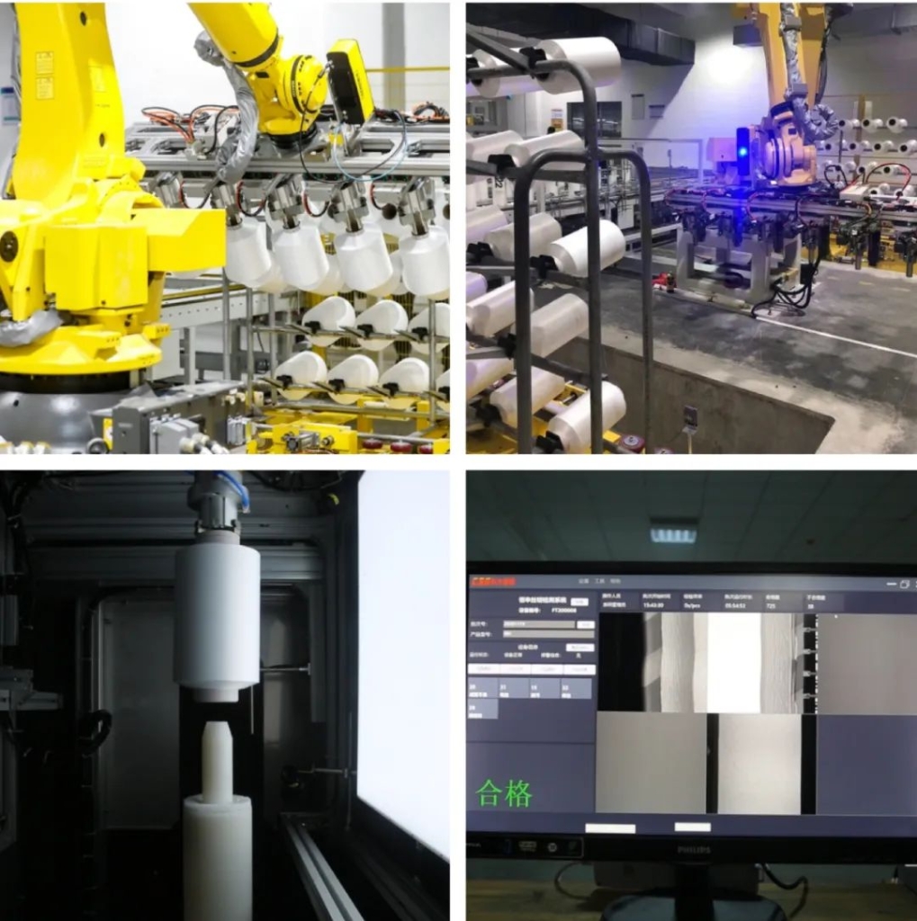 面對(duì)紡絲人工檢測(cè)存在的檢測(cè)時(shí)間長、檢測(cè)效率低、易疲勞、用工難的問題,福建恒申集團(tuán)通過外觀視覺檢測(cè)系統(tǒng)解決產(chǎn)品外觀檢測(cè)難題,提高產(chǎn)品合格率和效率,運(yùn)用機(jī)器視覺設(shè)備代替人眼完成檢測(cè)、測(cè)量和判斷,實(shí)現(xiàn)產(chǎn)品毛絲、絆絲、網(wǎng)絲、成型不良、油污、紙管破損等一體化外觀檢測(cè);檢測(cè)時(shí)間由之前人工檢測(cè)一車48錠絲餅需要5分鐘提升到每錠2.5秒,整車僅需2分鐘即可完成檢測(cè),效率提升2.5倍,準(zhǔn)確率由人工的96%提升至99%。