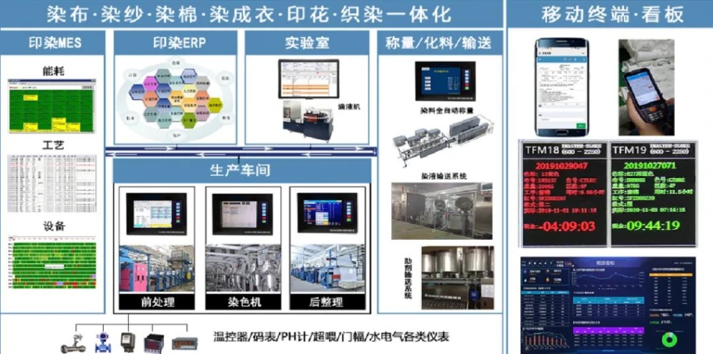 面對(duì)印染企業(yè)在生產(chǎn)過程中普遍存在的運(yùn)行效率低、能耗高以及管理方式較為粗放等痛點(diǎn),并結(jié)合當(dāng)前市場(chǎng)小批量、多品種的變化趨勢(shì),杭州天富公司成功研發(fā)了印染智造系統(tǒng)。系統(tǒng)全面覆蓋了從染布、染紗、染棉到染成衣,再到印花與織染一體化的全過程,實(shí)現(xiàn)了生產(chǎn)過程的全面數(shù)字化管理。