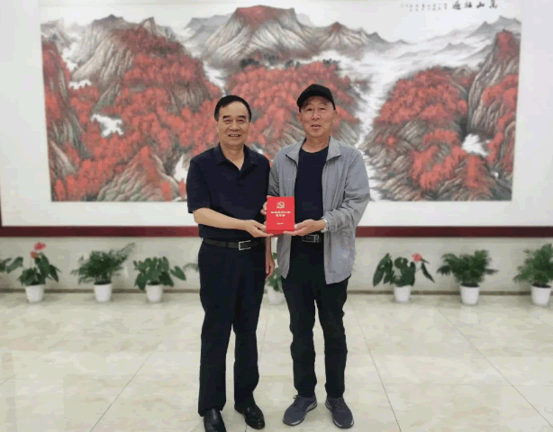 會前,鷹游集團(tuán)黨委書記、董事長張國良為黨齡滿50周年的老黨員成大陣頒發(fā)“光榮在黨50年”紀(jì)念章,并致以誠摯問候和崇高敬意。
